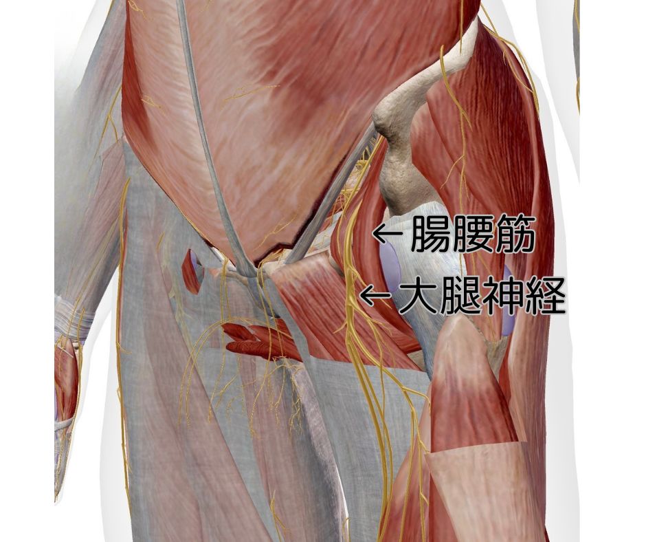 大腿神経は腸腰筋(足を上げる筋肉)のすぐ横を通っています。