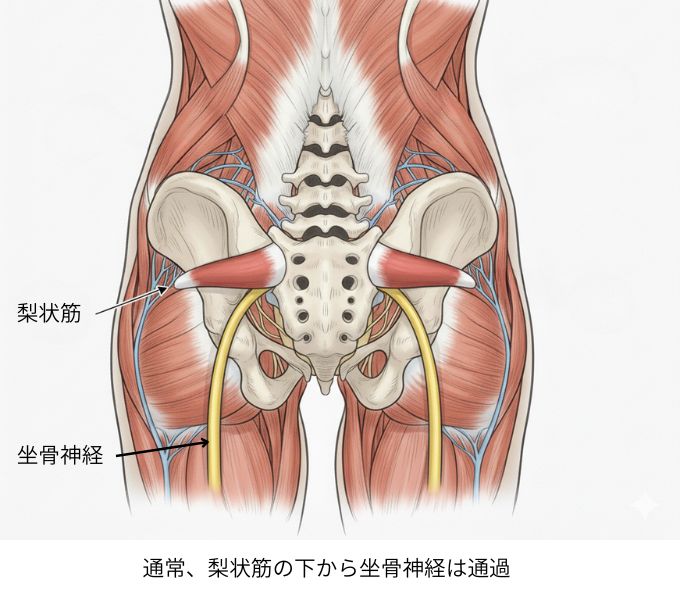 梨状筋が硬くなり、神経を圧迫することが原因になる場合があります。